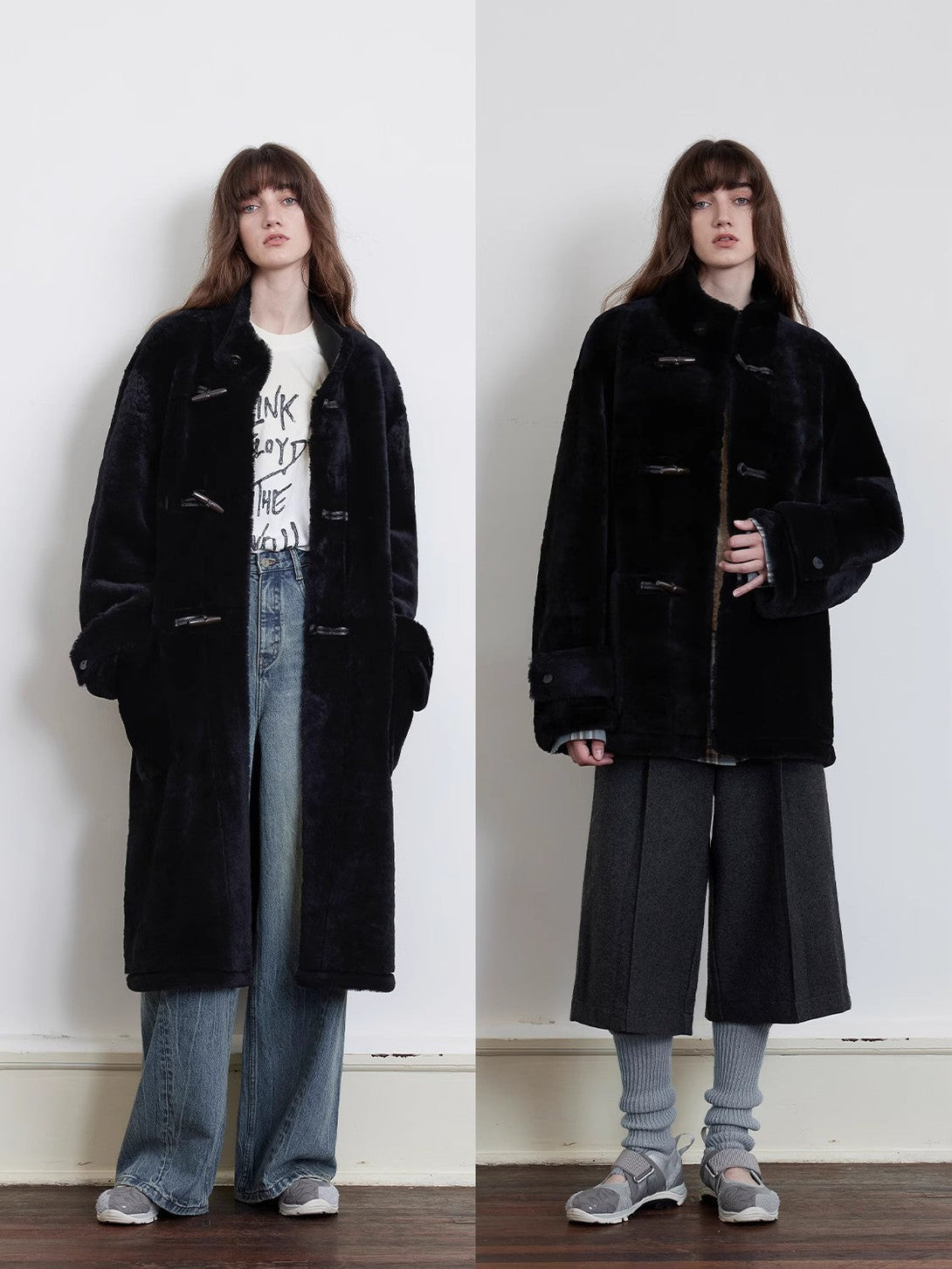 Embrace effortless elegance with this neat and wide-cut sheepskin jacket that maintains both structure and warmth while exuding sophisticated style. Simply wrap yourself in luxury and step out with confidence. Available in long and short-length options to perfectly complement different heights and body shapes, allowing you to express your casual style freely.