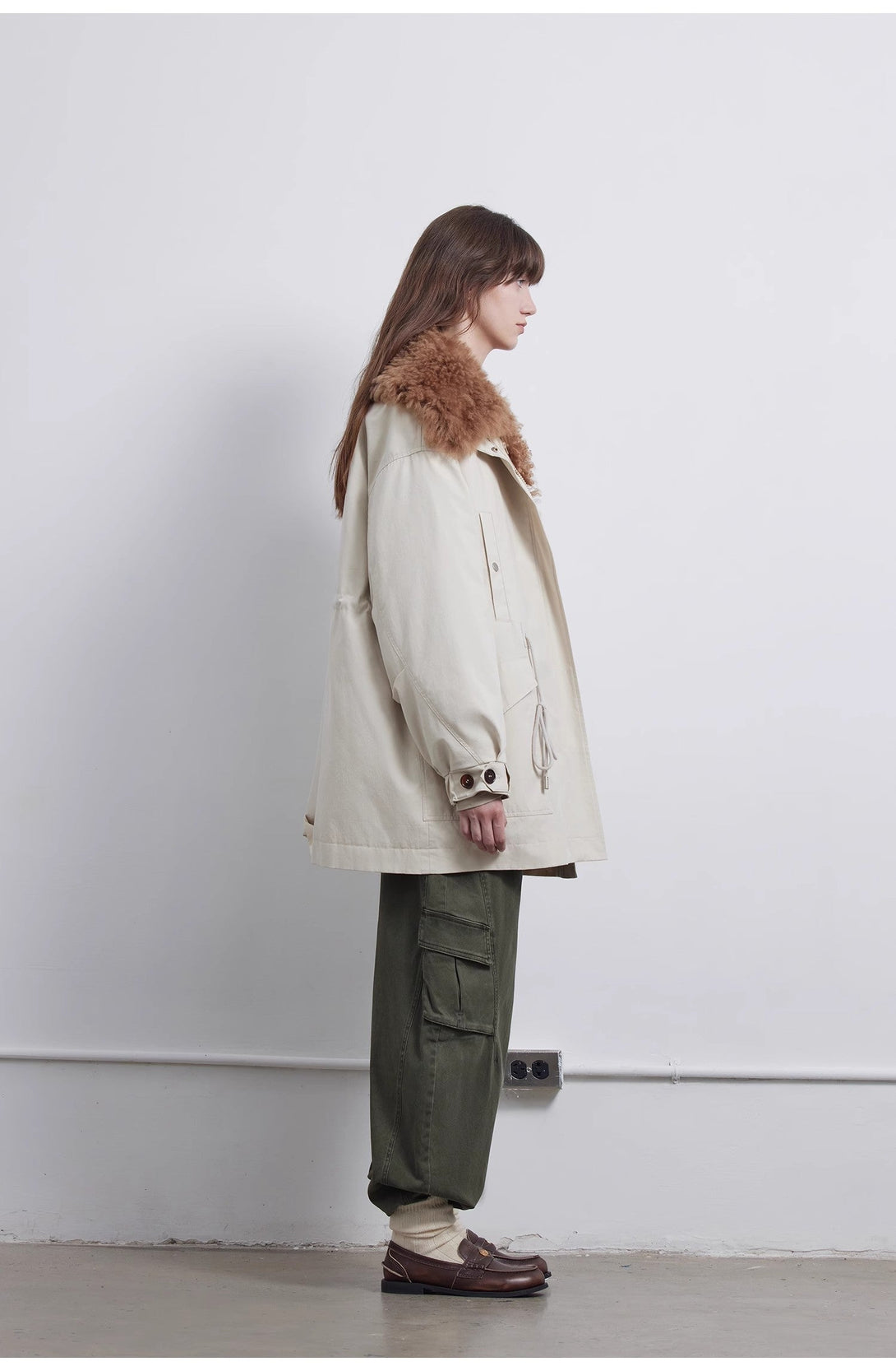 Green Mile Miracle Loose Drawstring Down Removable Mid-Length Jacket