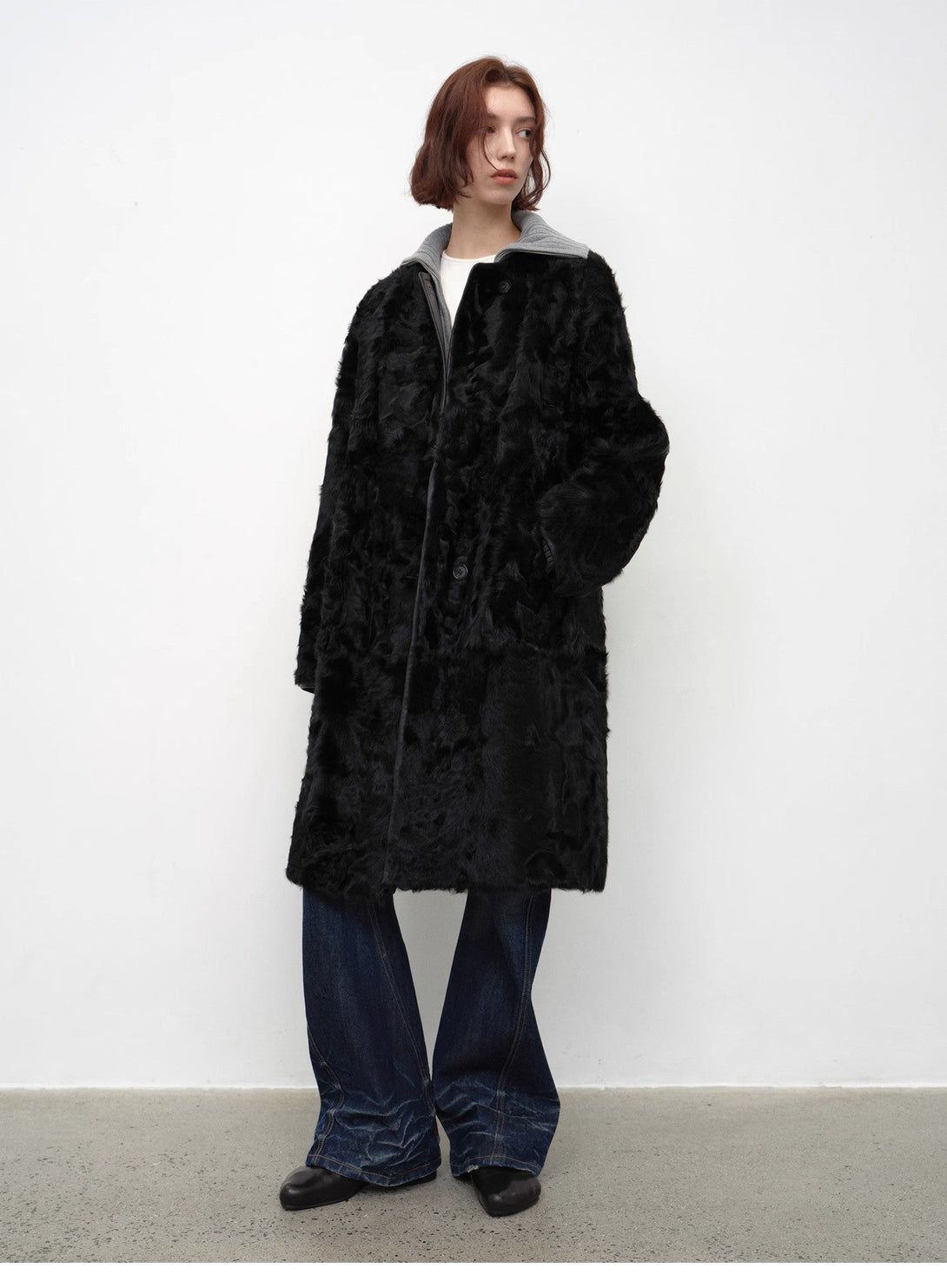 "Roman Theater" Sheepskin Fur One-Piece Long Round Neck Straight Fur Coat for Women Winter