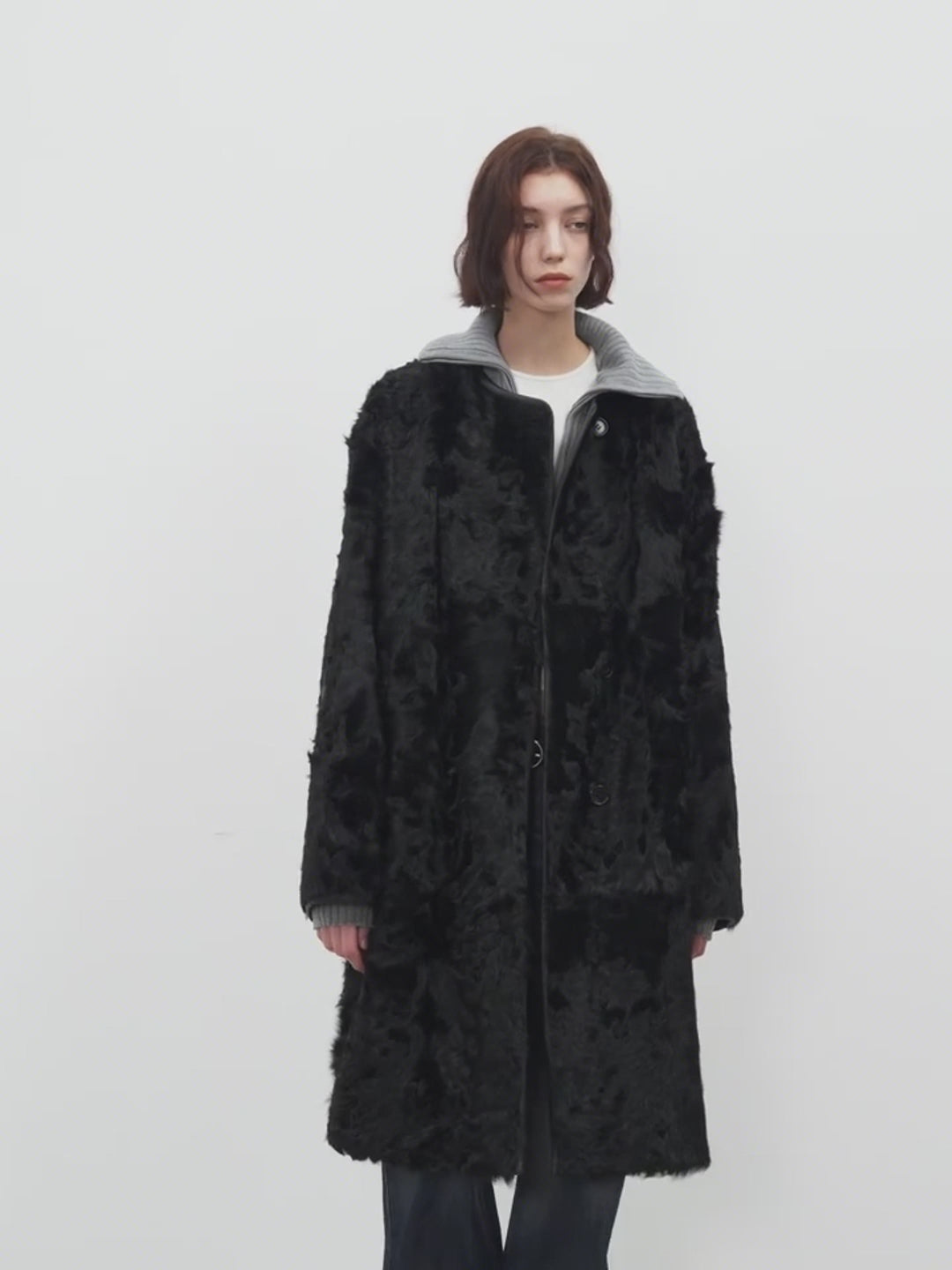 Limited Edition Custom "Precious and Rare Little Lake Lamb Curly Wool" Minimalist ROW Style Straight Long Coat – Silk-like Smooth Comfort and Ultimate Warmth.
